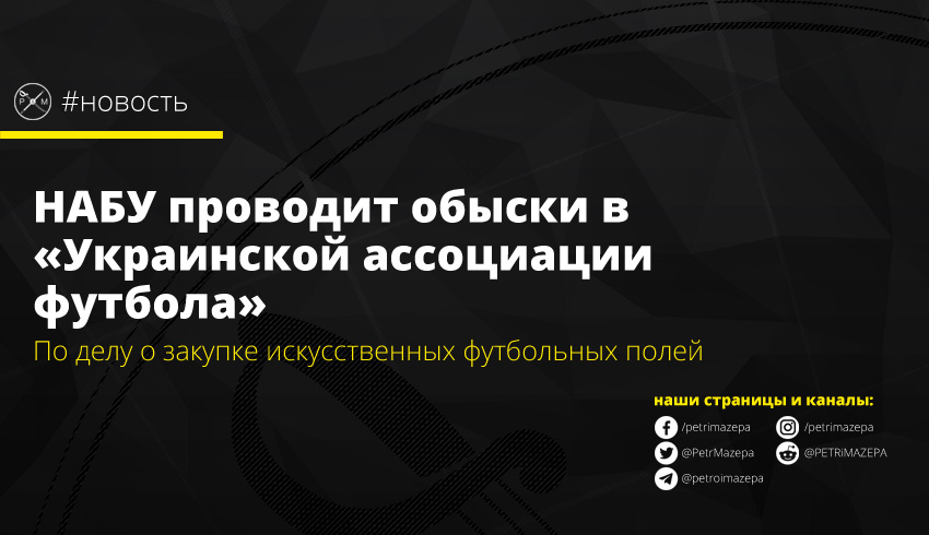 Детективы Национального антикоррупционного бюро (НАБУ) проводят обыски в здании центрального офиса «Украинской ассоциации футбола» (бывшая «Федерация футбола Украины»). Следственные действия санкционированы судом и проводятся по делу о закупке искусственных футбольных полей.