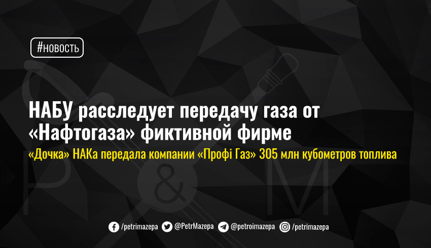 Национальное антикоррупционное бюро начало досудебное расследование в отношении заключения мирового соглашения по передаче 305 миллионов кубометров газа от дочерней компании НАК «Нафтогаз Украины» фирме с признаками фиктивности «Профі Газ».