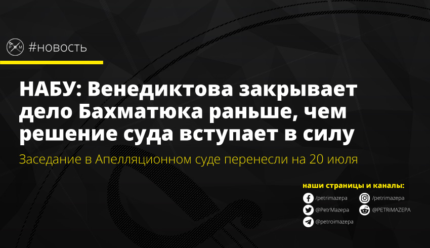 НАБУ: Венедиктова закрывает дело Бахматюка раньше, чем решение суда вступает в силу