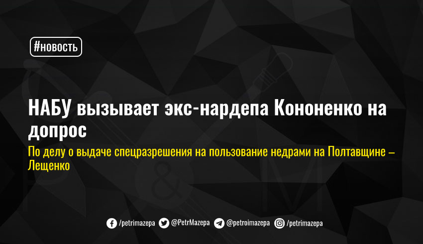 Экс-нардеп, член набсовета «УЗ» Сергей Лещенко сообщил в Telegram, что Кононенко вызывают как свидетеля по делу о выдаче спецразрешения компании «Аркона газ-Энергия» на пользование недрами в Полтавской области. «Как известно, “Аркона газ-Энергия” получила спецразрешение за 3,8 млн грн. Правда, позже фирму приобрела группа компаний Вадима Новинского за 8,6 млн долларов. По подсчетам эксперта, государству таким образом были нанесены убытки на 196,8 млн грн», - пишет Лещенко.