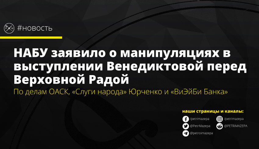 Национальное антикоррупционное бюро Украины обвинило генерального прокурора Ирину Венедиктову в манипуляциях – и опровергло ее заявления по делам ОАСК, «Слуги народа» Юрченко и «ВиЭйБи Банка».
