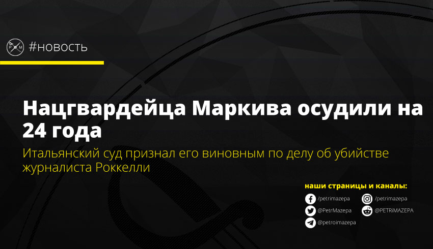 Итальянский суд осудил бойца Нацгвардии Украины Виталия Маркива и приговорил его к 24 годам заключения. При этом его обязали выплатить компенсацию семье погибшего. Мотивационную часть решения суд не оглашал.