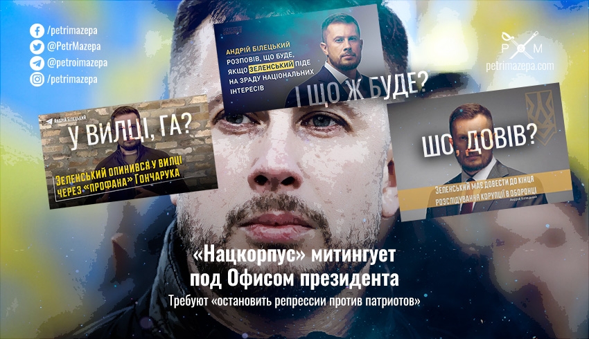 «Нацкорпус» проводит акцию под Офисом президента, чтобы «остановить репрессии против патриотов». На акцию вышли после того, как в Харькове арестовали представителей «Нацкорпуса», подозреваемых в вымогательстве.