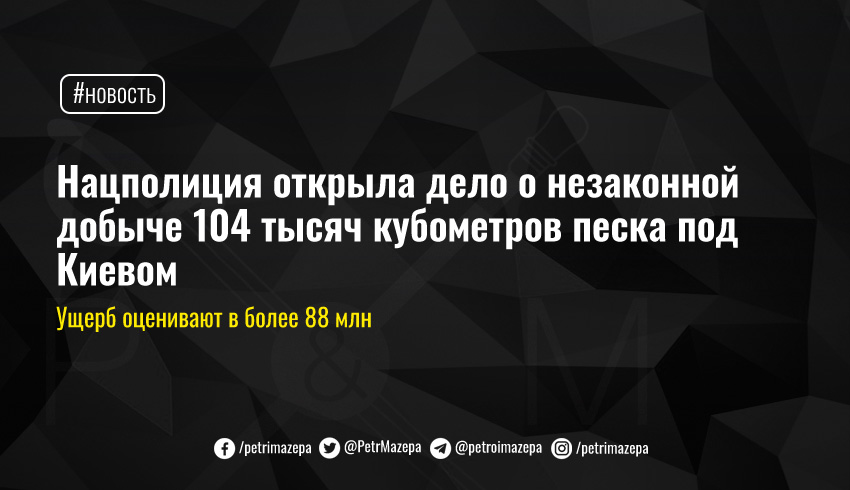 Сотрудники Национальной полиции сообщили о подозрении директору ООО в незаконном завладении 104 000 кубометров песка. Убытки для государства оценивают в более 88 млн грн.