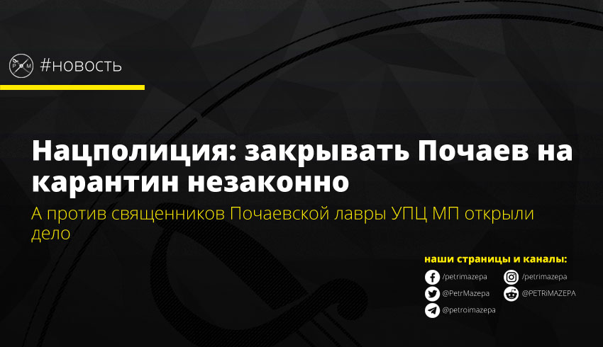 При этом уточняется, что против священников Почаевской лавры УПЦ МП было открыто дело из-за нарушения санитарных норм и правил во время богослужения на Пасху.