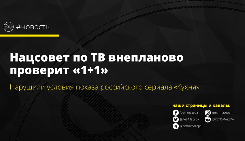Национальный совет по вопросам телевидения и радиовещания назначил на заседании 2 июля внеплановую проверку телеканала «1+1». Причина – трансляция сериала «Кухня» не на государственном языке.