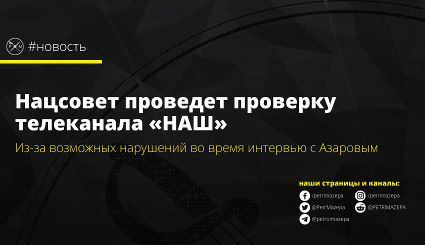 Нацсовет по телевидению и радиовещанию проведет внеплановую проверку телеканала «НАШ» из-за интервью с бывшим премьер-министром Украины Николаем Азаровым.