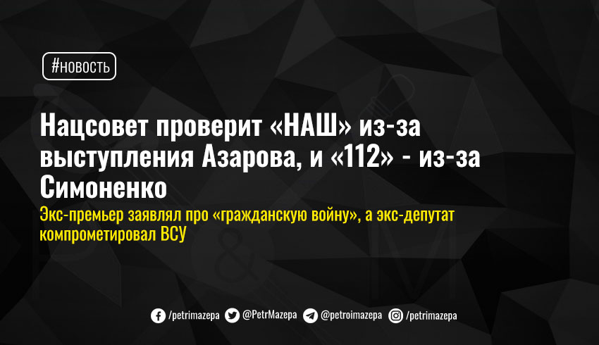 Нацсовет проверит «НАШ» из-за выступления Азарова, и «112» - из-за Симоненко