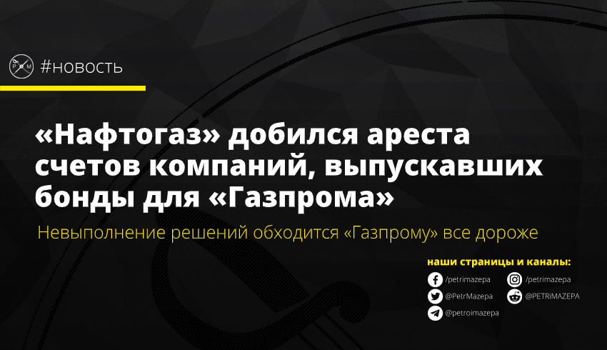 «Нафтогаз» добился ареста счетов компаний, выпускавших бонды для «Газпрома»
