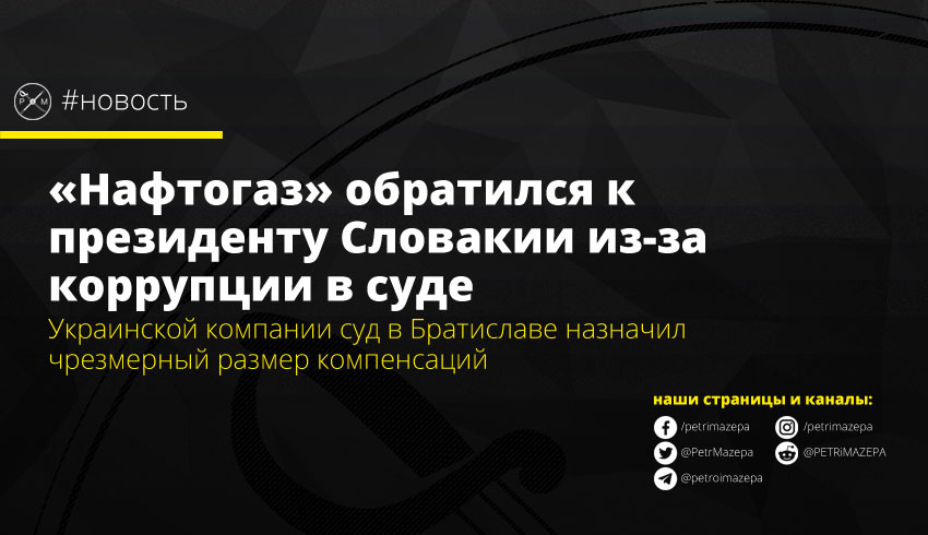 НАК «Нафтогаз» направила письмо президенту Словакии Зузане Чапутовой с просьбой помочь в прекращении незаконных попыток вывести из компании миллионы долларов. Причина – в коррумпированности суда Братиславы, который назначил чрезмерные суммы компенсаций по делу против НАК.