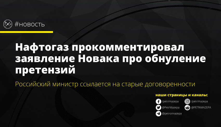 Нафтогаз прокомментировал заявление Новака про обнуление претензий