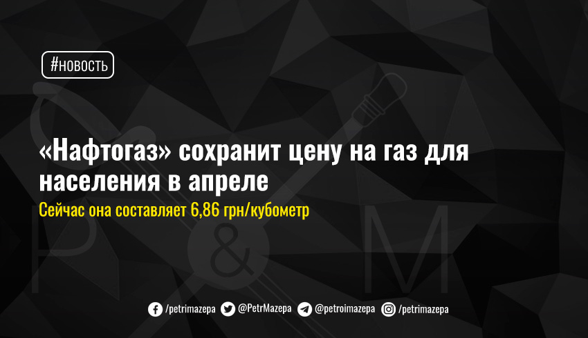 НАК «Нафтогаз Украины» в апреле сохранит цену газа для населения на текущем уровне 6,86 гривень за кубометр.