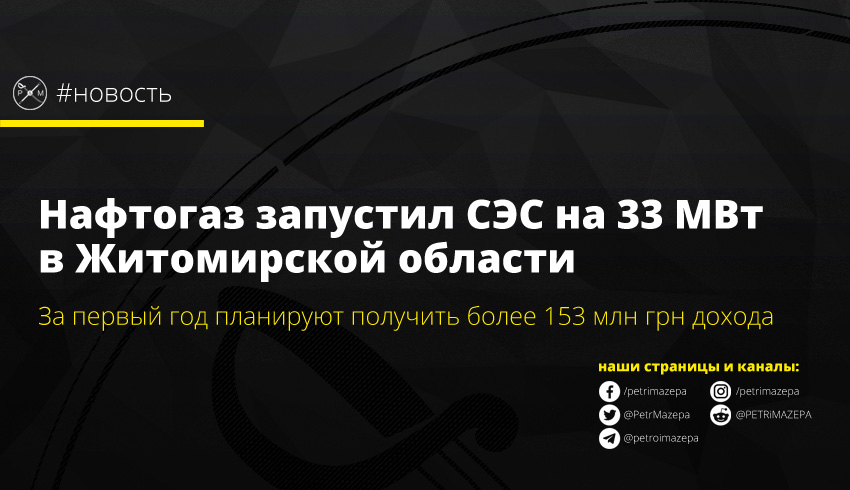 Нафтогаз запустил СЭС на 33 МВт в Житомирской области