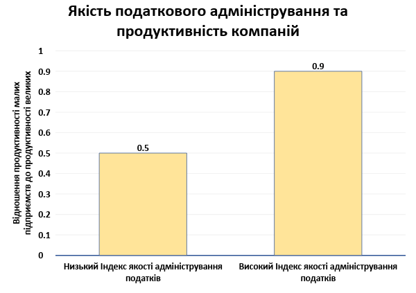 За низької якості податкового адміністрування продуктивність малих підприємств становить лише половину (50%) від продуктивності великих. За високої якості податкового адміністрування продуктивність слабо залежить від розміру підприємства — таким чином, продуктивність малих підприємств складає 90% від продуктивності великих.