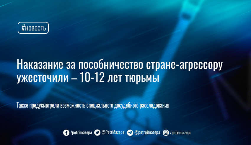 Наказание за пособничество стране-агрессору ужесточили – 10-12 лет тюрьмы