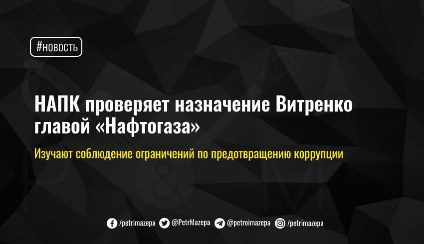 НАПК проверяет назначение Витренко главой «Нафтогаза»