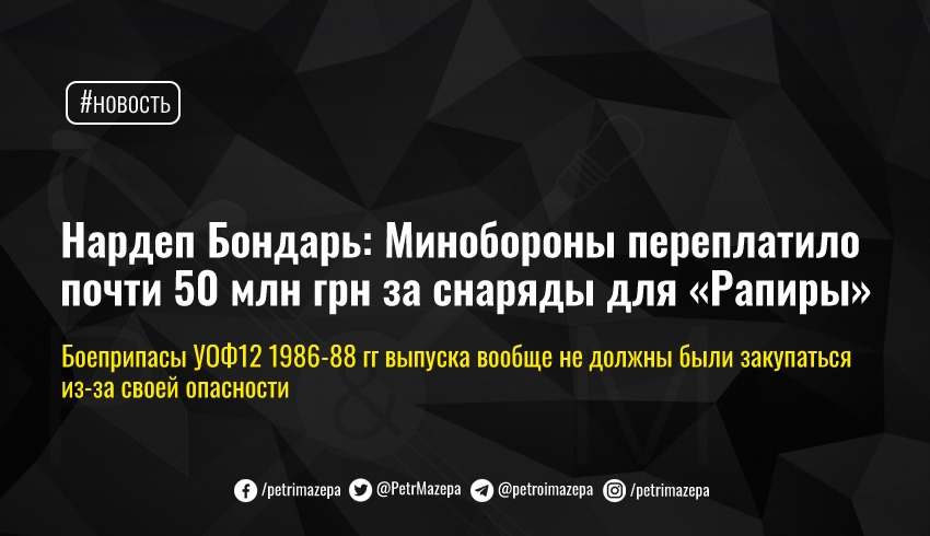 Нардеп Бондарь: Минобороны переплатило почти 50 млн грн за снаряды для «Рапиры»