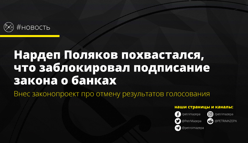 Нардеп Поляков похвастался, что заблокировал подписание закона о банках