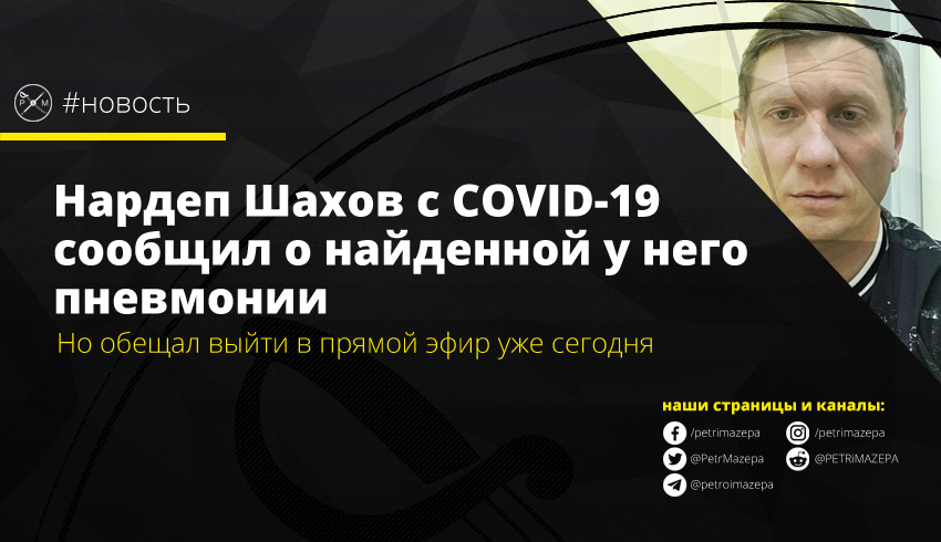 Народный депутат от группы «Довіра» Сергей Шахов, у которого несколько дней назад обнаружили коронавирусную инфекцию COVID-19 сообщил об изменении своего состояния. Теперь врачи нашли у него в легких «незначительную пневмонию».