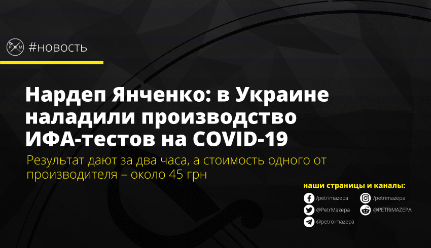 Нардеп Янченко: в Украине наладили производство ИФА-тестов на COVID-19