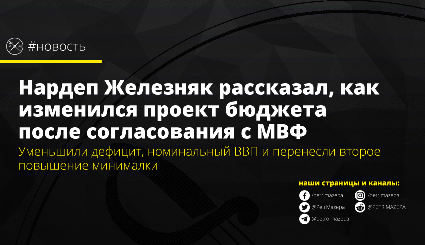 Народный депутата Ярослав Железняк (фракция «Голос») сообщил об изменениях, которые претерпел проект бюджета Украины на 2021 год в результате согласования с МВФ. Почти по всем параметрам кредиторам удалось приструнить аппетиты нардепов.