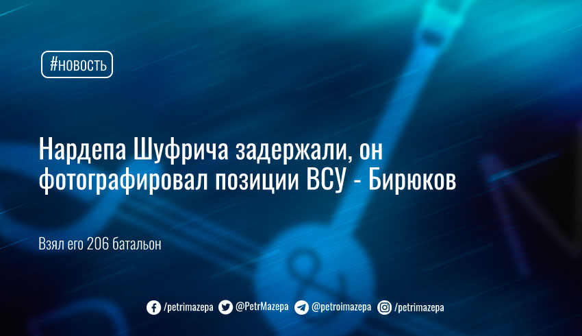 Юрий Бирюков сообщил, что нардеп от ОПЗЖ Шуфрич был задержан бойцами 206 батальоном.