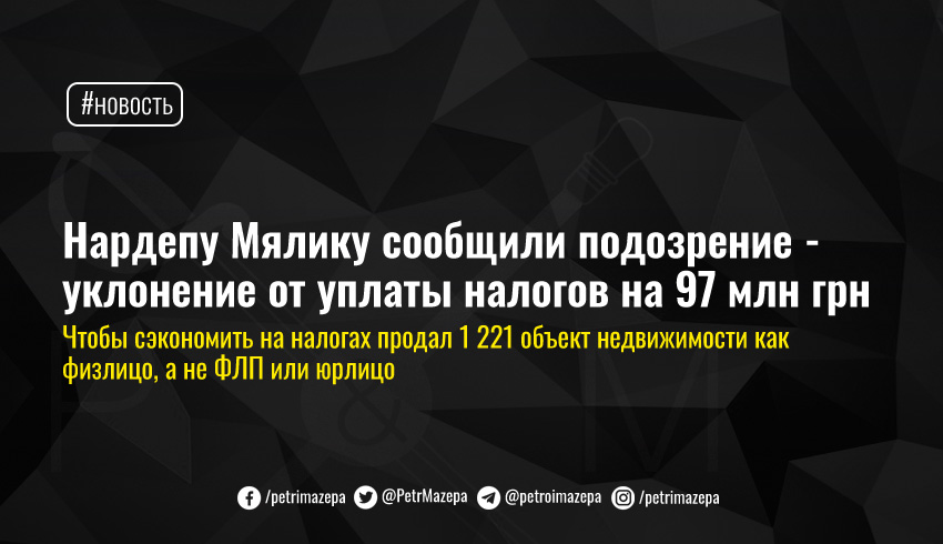 Нардепу Мялику сообщили подозрение - уклонение от уплаты налогов на 97 млн грн