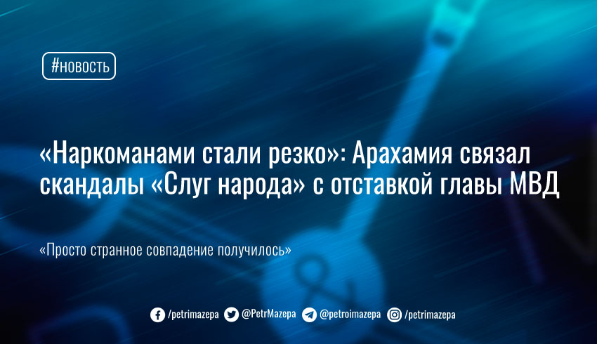 Глава фракции «Слуга народа» Давид Арахамия заявил о некоем «странном совпадении» - что в то время, когда неназванный им по имени «экс-министр МВД» не хотел уходить в отставку, депутатов от его фракции стали задерживать за рулем под действием наркотиков.