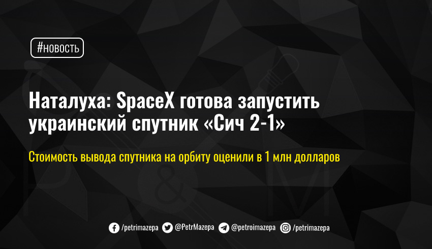 Наталуха: SpaceX готова запустить украинский спутник «Сич 2-1»