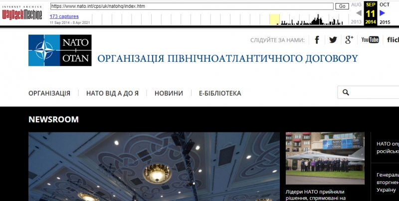 «Европейская правда» сообщает, что сайт НАТО уже давно постепенно наполнял украинскую версию. Отдельный контент, как говорят в Альянсе, начали переводить на украинский еще в 1997 году. В 2009 году было существенное расширение украиноязычного контента, а в 2014 году, в ответ на гибридную агрессию России, была еще одна волна обновления. Если же проверить через archive.org ту страницу, которая по умолчанию открывается на сайте НАТО, если его просматривать из Украины, то можно увидеть, что она появилась, как минимум, в 2014 году.