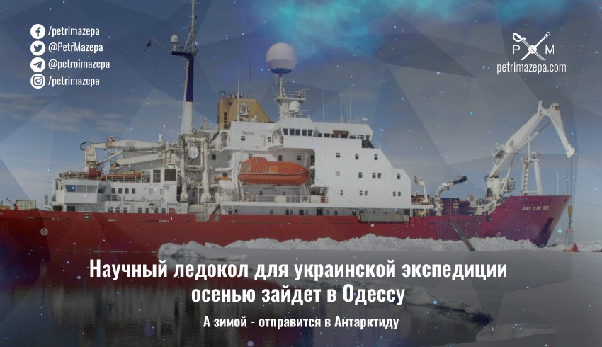 В сентябре запланирован визит научно-исследовательского ледокола James Clark Ross в порт Одессы. Именно это судно Кабмин решил купить у Великобритании для украинских полярников. И на нем команда экспедиции зимой отправится в Антарктику.