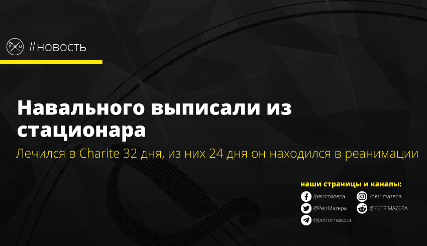 Таким образом, Навальный лечился в Charite 32 дня, из них 24 дня он находился в реанимации. По прогнозам медиков, Навальный может полностью выздороветь. «О каких-либо отдаленных последствиях тяжелого отравления можно будет судить позже», - заявили в клинике.