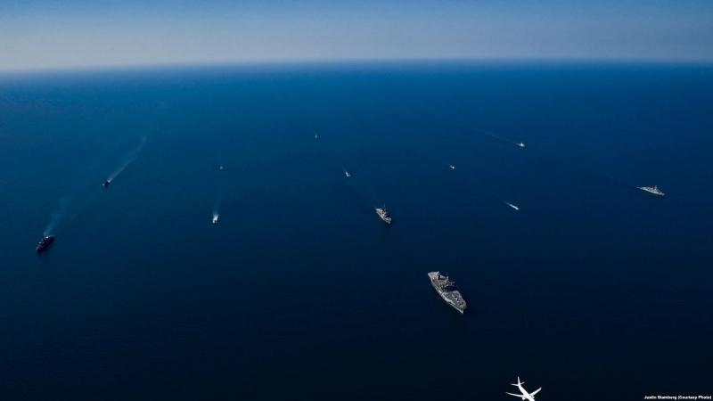 Останні чотири роки українсько-американські навчання «Сі Бриз» проходять у повному форматі, тобто складаються із трьох компонент: морської, повітряної, сухопутної. Одну з найбільш видовищних фаз маневрів, коли в море на завдання вийшла міжнародна тактична група, зафіксував на фото американський офіцер із комунікацій Джастін Стамберг.