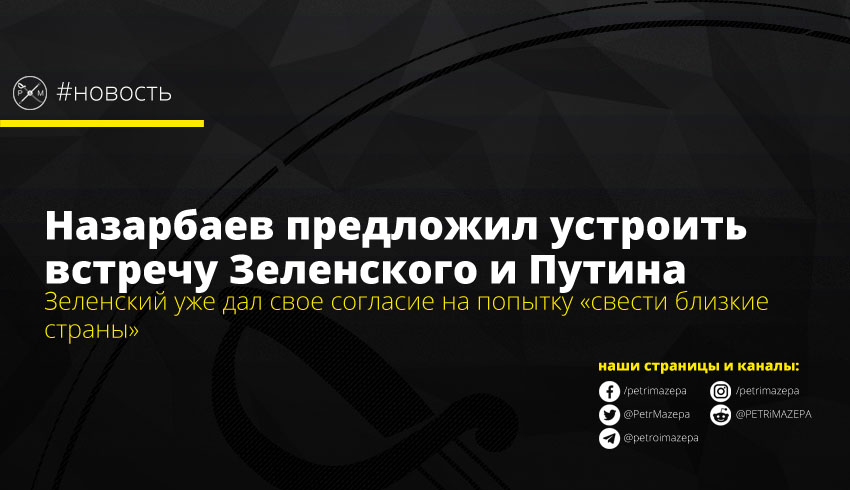 Бывший президент Казахстана Нурсултан Назарбаев сообщил, что хочет устроить встречу «тет-а-тет» между президентом Украины Владимиром Зеленским и президентом РФ Владимиром Путиным, чтобы разрешить «печальный момент», который произошел между двумя «близкими странами». По словам Назарбаева, Зеленский уже дал свое согласие.