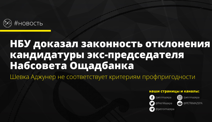 В Нацбанке утверждают, что кандидатура Аджунера не соответствует критериям профессиональной пригодности (наличие у Шевки Аджунера конфликта интересов и ненадлежащее исполнение им обязанностей председателя наблюдательного совета).