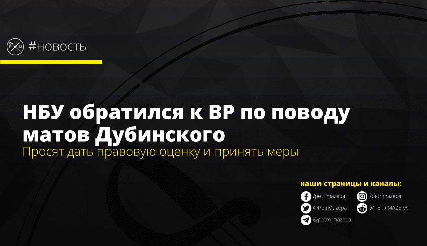 Национальный банк Украины обратился в Верховную раду из-за заявлений лица, «которое выдает себя за народного депутата Украины Александра Дубинского». В НБУ считают, что недавно распространенные этим лицом заявления нарушают право на честь и достоинство, а в случае если их автором действительно является Дубинский – еще и закон. В связи с чем главу ВР Дмитрия Разумкова, главу регламентного комитета Сергея Кальченко и финансового комитета Даниила Гетьманцева просят установить авторство высказываний и в случае если их допустил нардеп – принять меры.