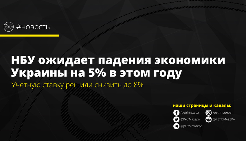 В НБУ считают, что н фоне глобального кризиса и карантина в стране украинская экономика сократится на 5,0% в 2020 году, но возобновит рост на уровне около 4% в последующие годы. Ожидается, что негативное влияние последствий пандемии на украинскую экономику будет «относительно краткосрочным, но достаточно мощным», сообщает пресс-центр регулятора.
