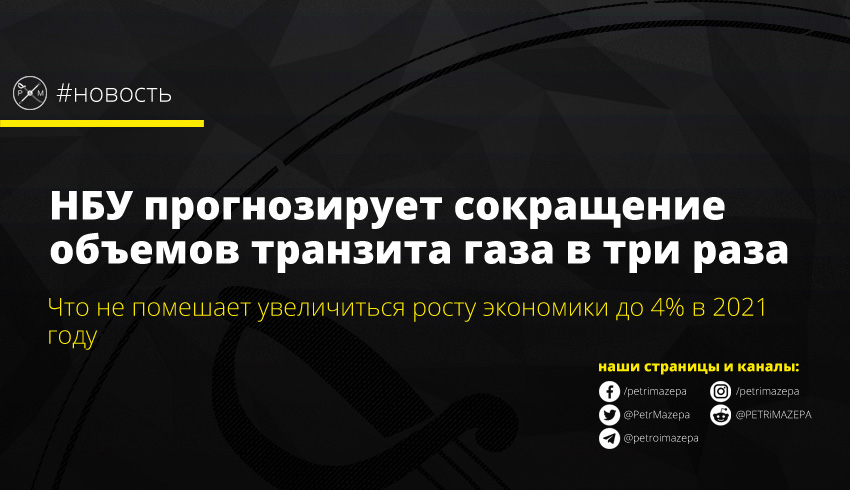 Национальный банк (НБУ) сохранил прогноз инфляции на 2019-2021 годы и улучшил оценку роста экономики. В своем прогнозе НБУ рассматривает вариант уменьшения объемов транзита газа с 90 млрд кубометров в год 2019 году до 30 млрд кубометров в 2021 году. Несмотря на потери денег из-за уменьшения транзита нам предрекают рост ВВП на 4% в 2021 году.