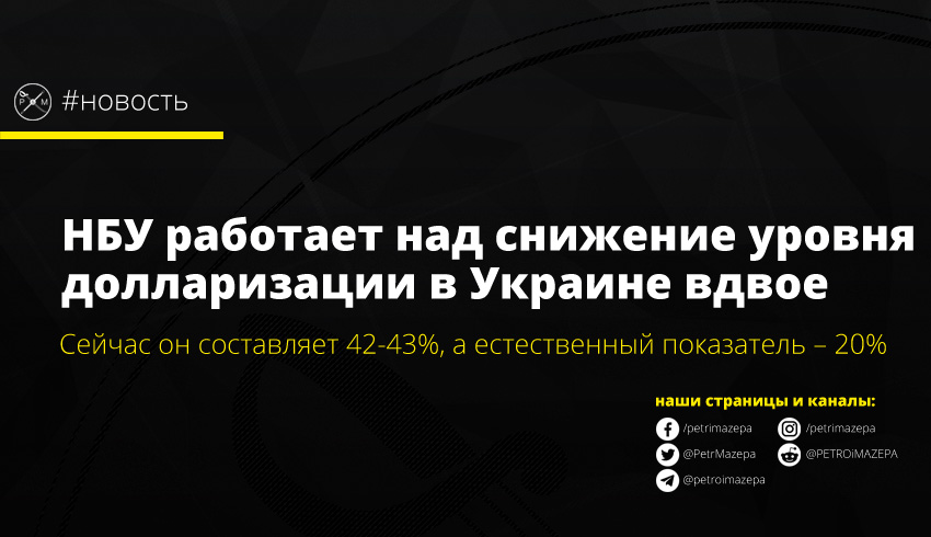 «В 2018 году этот показатель составлял 43% и 42% по валовым кредитам и депозитам соответственно. В то же время естественный показатель долларизации для Украины (соответствует потребностям бизнеса и населения в использовании иностранной валюты для осуществления внешнеэкономической деятельности и страхования от валютных рисков) находится на уровне около 20%», - сообщает пресс-служба НБУ.