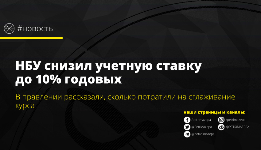НБУ снизил учетную ставку до 10% годовых