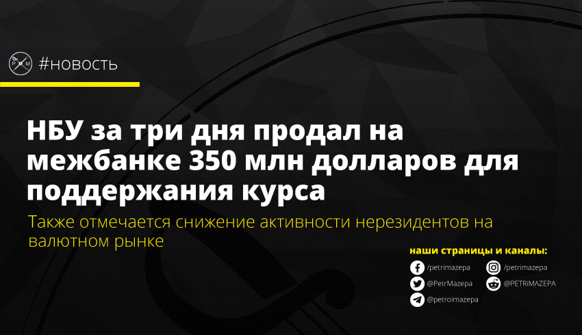 НБУ за три дня продал на межбанке 350 млн долларов для поддержания курса