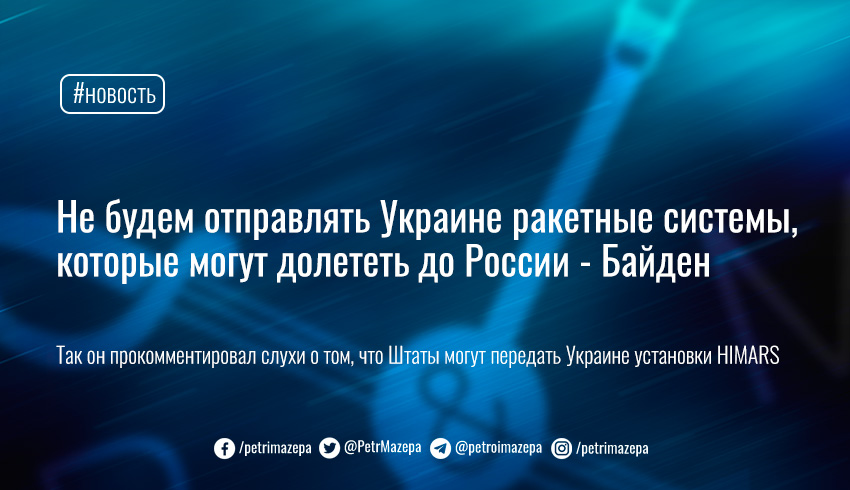 Агентство указывает, что так Байден прокомментировал слухи, будто Белый дом готовится отправить в Киев передовые ракетные системы большой дальности. В частности, речь шла об установках HIMARS.