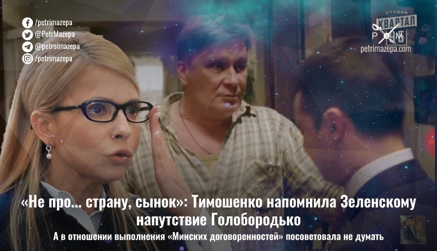 Лидер партии «Батьківщини» Юлия Тимошенко написала пост предостережение для Владимира Зеленского из-за обострившейся полемики вокруг «Минских договоренностей». И использовала в качестве напутствия фрагмент из сериала про Голобородько, который ранее хорошо послужил самому Зеленскому.