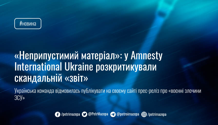 «Недопустимый материал»: в Amnesty International Ukraine раскритиковали скандальный «отчет»