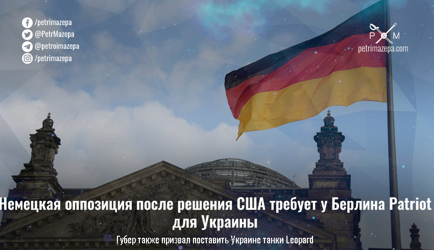 После объявления США о поставках Украине ЗРК Patriot генеральный секретарь оппозиционного Христианско-социального союза (ХСС) призвал правительство Германии также предоставить Киеву подобные системы вооружения.