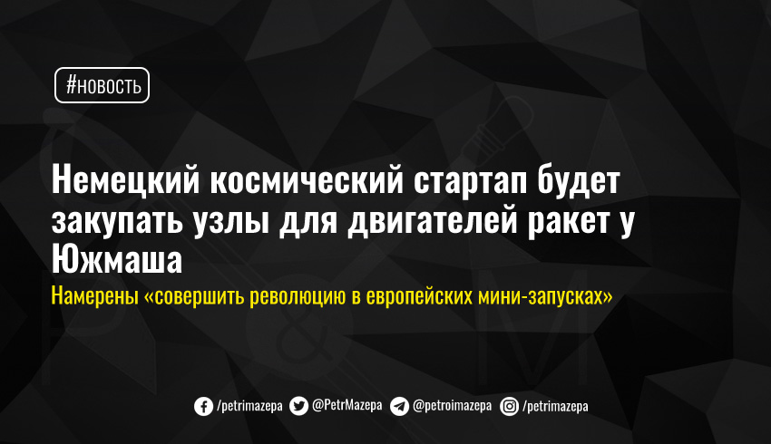 Немецкий космический стартап будет закупать узлы для двигателей ракет у Южмаша