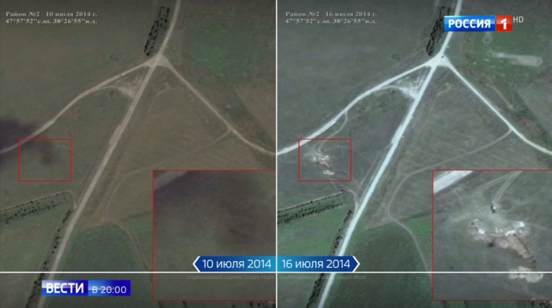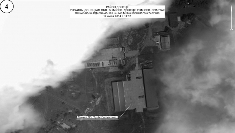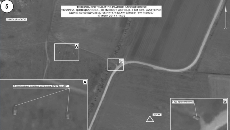 - спутниковые снимки, на которых две украинские СОУ «Бук» находятся в поле к югу от Зарощенского. Эти снимки были сфабрикованы;