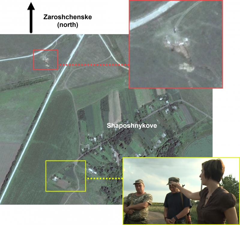 По репортажу BBC очевидно, что эта деревня контролируется российскими/сепаратистскими силами, боевики патрулируют этот район. Разговор корреспондента BBC и двоих российских/сепаратистских наёмников происходит немногим более полукилометра к юго-востоку от позиции, на которую обратили внимание «Вести». Если позиция близ Шапошниково действительно была оборудована украинскими силами, как утверждается в репортаже «Вестей» от декабря 2017 года, то можно было бы ожидать каких-либо свидетельств боёв или отступления до 23 июля, когда украинская артиллерия обстреливала Шапошниково, подконтрольное России/сепаратистам.