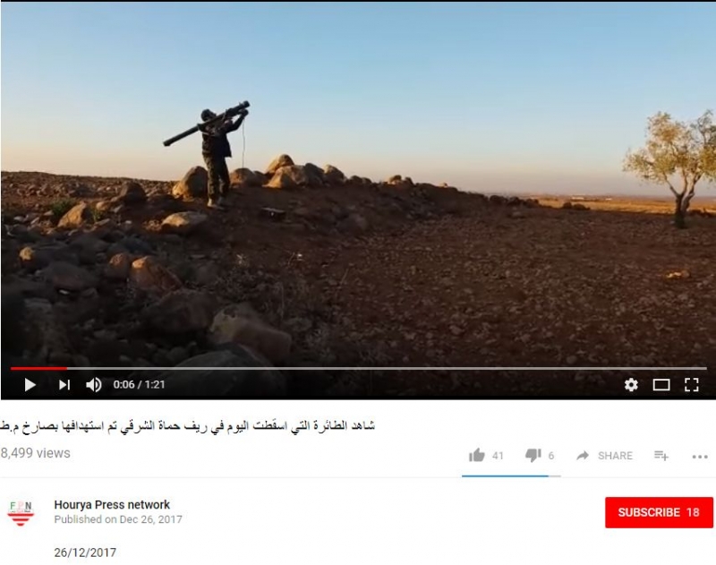 Исламисты и раньше сбивали самолёты сирийских ВВС, которых остаётся всё меньше. Как и их пилотов. Но в этот раз сбивали показательно из ПЗРК, как бы передавая привет российским ВКС. Интересно, что к ПЗРК для подачи питания подведён провод с земли. Видимо, химический элемент от старости вышел из строя. Идёт ли речь о какой-то новой партии старых ПЗРК или это из запасов армии Ассада — так и неясно. К тому же такой способ запуска ограничивает мобильность группы ПВОшников-исламистов, но если примерно знать, где заходят на посадку российские самолёты или делают манёвры, то так же можно сбивать и российские самолёты и вертолёты.