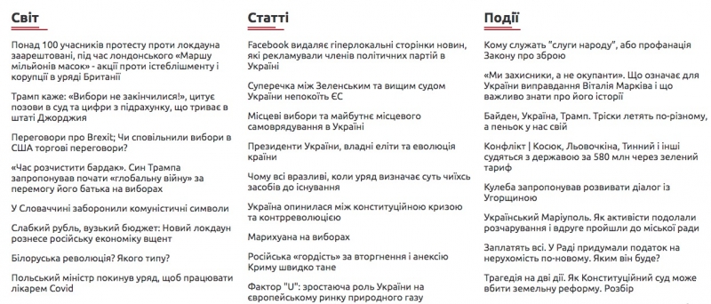 О приоритетах. Один из самых крутых у нас — международный раздел. Там мы успеваем освещать и антимонархические протесты в Таиланде, и признание локдауна неконституционным в ЮАР. Подбор информации требует времени — мониторим много десятков мировых источников в день. Но так мы показываем украинцам, что вокруг нас не пустыня, а настоящий бушующий океан и люди в разных странах точно так же сражаются за свободу, как и мы. И в этом мире нам надо свободно плавать, а не сажать себя под замок — так что тем, кому по душе усиление государственного контроля, к нам точно нельзя. Мы говорим только о свободе.